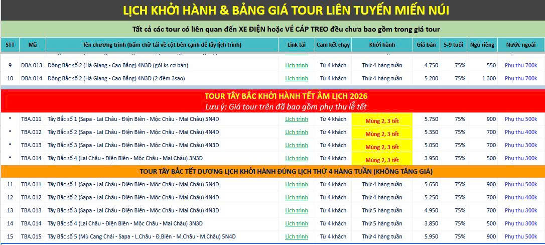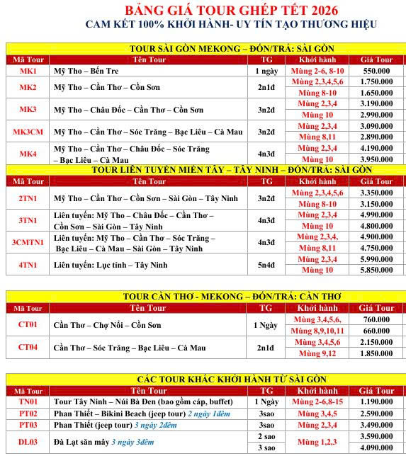Tour đoàn riêng theo yêu cầu dịp tết 2026
